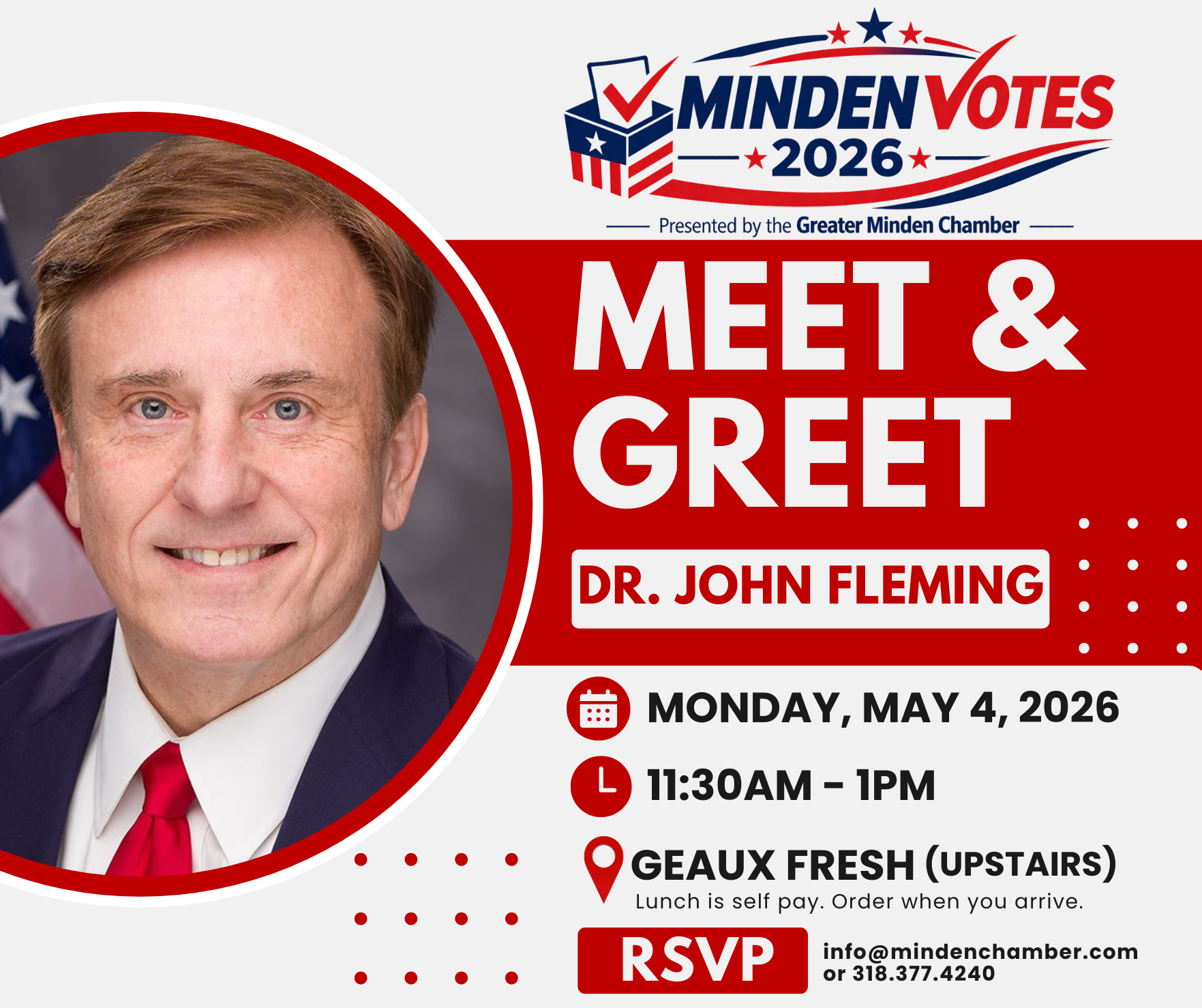 The Greater Minden Chamber invites you to join us for a Meet & Greet with Dr. John Fleming as part of our new Minden Votes 2026 election series.